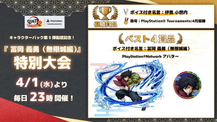 PS5版にて参加ができる「PlayStation® Tournaments」につきまして、4月は下記内容にて開催をいたします!